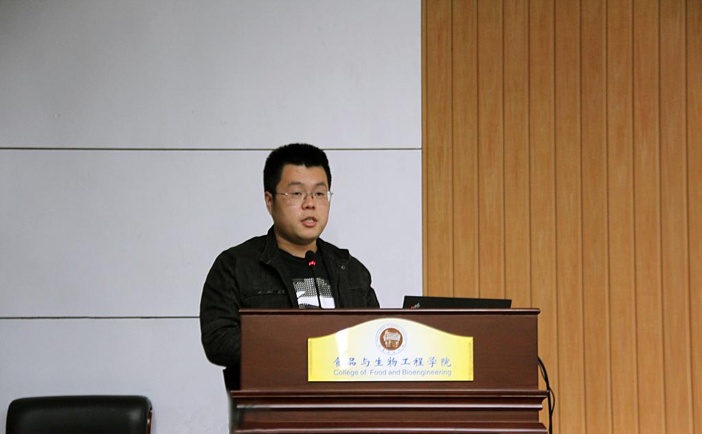 张杰博士和岳崇慧博士结合自身研究成果和学习经历,分别以《酒酒球菌β-葡萄糖苷酶的酶学性质、催化机理及应用研究》、《中长链结构脂质制备及其抗动脉粥样硬化机制研究》为题作学术报告,并且对同学们提出的问题进行详细的解答,现场学术氛围热烈浓厚。