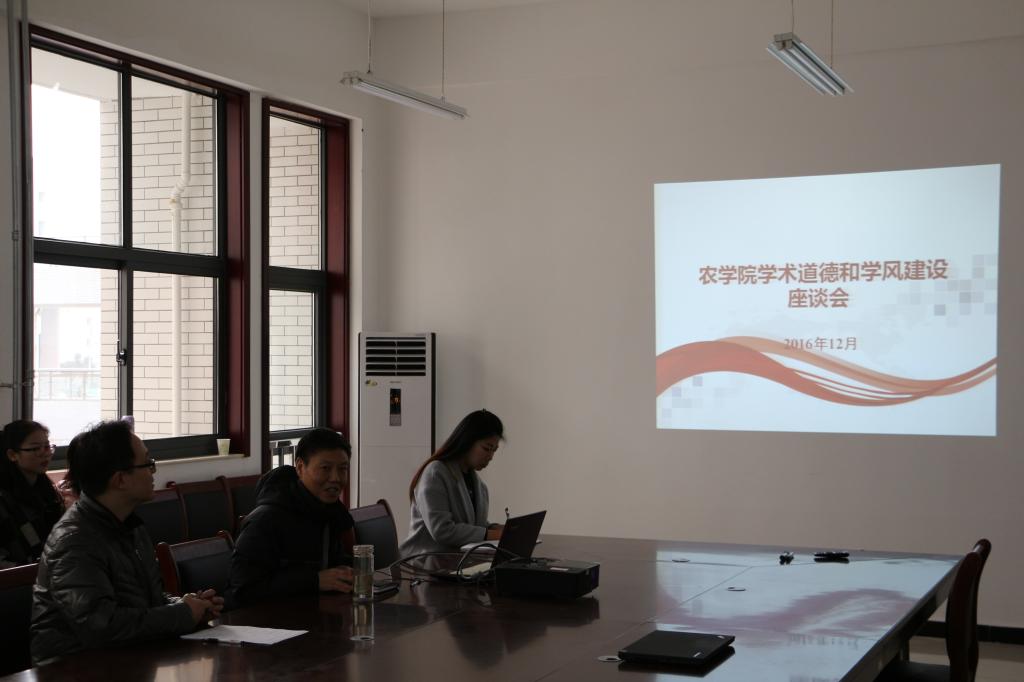 搭建交流平台,加深思想认识。12月12日,农学院在学院会议室举办学术道德和学风建设主题座谈会,农学院副院长付国占教授、研究生秘书宋鹏老师、研究生辅导员王真真老师出席了本次座谈会。