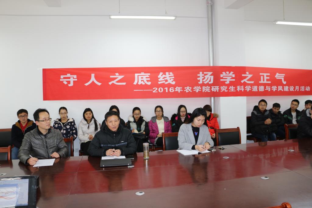 为进一步加强研究生科学道德和学风建设,营造学院浓厚科研学习氛围,12月6日至31日,农学院按照党委研究生工作部/研究生院有关工作安排,围绕研究生科学道德和学风建设两方面内容,结合学院实际,有针对性地组织开展了一系列形式多样、内容丰富、主题鲜明的特色活动。活动期间,学院领导高度重视,研究生秘书和研究生辅导员注重统筹安排,学院全体研究生积极参与,经过全院师生的共同努力,此次活动圆满成功举办,取得一定的教育成效。