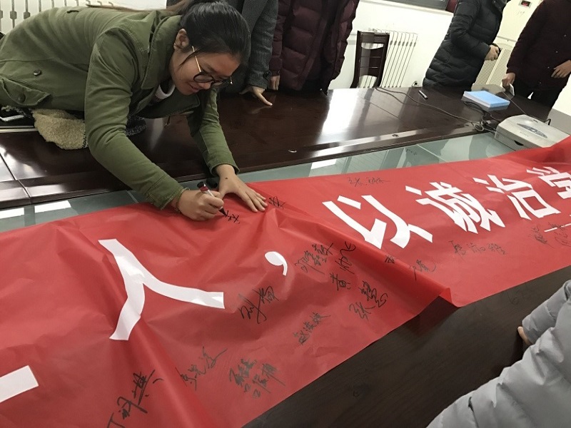 会上,研究生主管院长刘龙昌讲了关于学术道德方面应该注意的问题,引导研究生遵守学术规范、坚守学术诚信、完善学术人格、维护学术尊严,摒弃学术不端行为,努力成为优良学术道德的践行者和良好学术风气的维护者。同时,全体研究生认真学习相关资料并进行了宣誓,在诚信条幅上签写上了自己的名字。