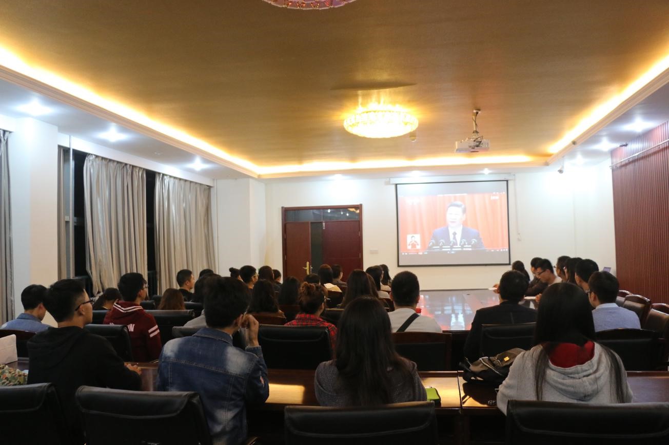 10月19日下午,党委研究生工作部组织研究生骨干在开元校区工科一号楼261会议室听取了习近平总书记作的题为“不忘初心,牢记使命,高举中国特色社会主义伟大旗帜,决胜全面建设小康社会,夺取新时代中国特色社会主义伟大胜利,为实现中华民族伟大复兴的中国梦不懈奋斗”的报告。
