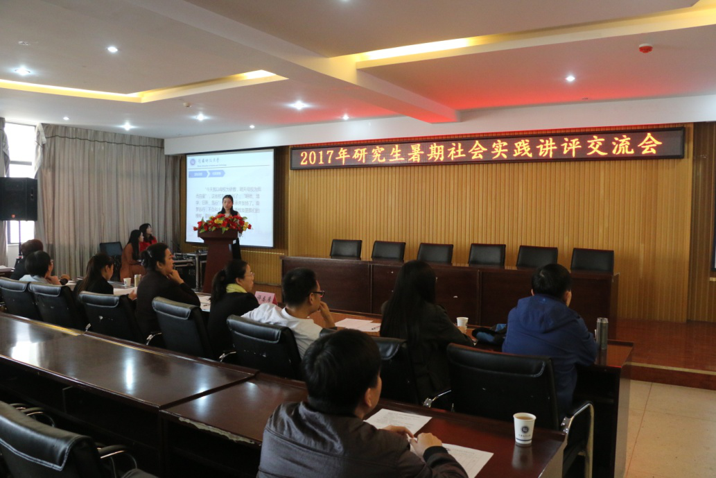 讲评交流会上,来自学校、学院暑期社会实践活动立项的10个研究生团队分享了实践体验。信工学院、材料学院、农工学院的立项团队代表分别讲述了他们在实践单位与技术人员开展科技创新、开发新设备、设计智能灵巧型机器人的经历。赴广深校友企业创新创业访谈调研队代表分享了他们探寻优秀校友创新创业成长规律的体会,讲述了优秀校友的创业故事。经济学院调研团队代表以“土地流转进程中耕地‘非粮化’现象探究”为题,介绍了对河南六个产粮大县实地调研的结果,用大量的数据详细解析了农村耕地“非粮化”存在的诸多问题和他们提出的有效防控耕地“非粮化”、保障国家粮食安全的政策建议。临床医学院团队代表分享了运用医学专业知识“下乡医疗服务”的收获,讲述了他们亲身经历的为农民防病治病的故事。机电学院的团队代表讲述了他们在西安制造业企业进行社会实践中的所见所闻。动科学院的团队代表讲述了他们运用专业知识为农村养殖业和经济发展献计献策的实践成果。食品学院的团队代表在会上还播放了兰考县电视台对他们社会实践活动的视频采访。研究生新媒体中心的团队代表分享了“微信平台在研究生教育工作中的应用”的调研成果。