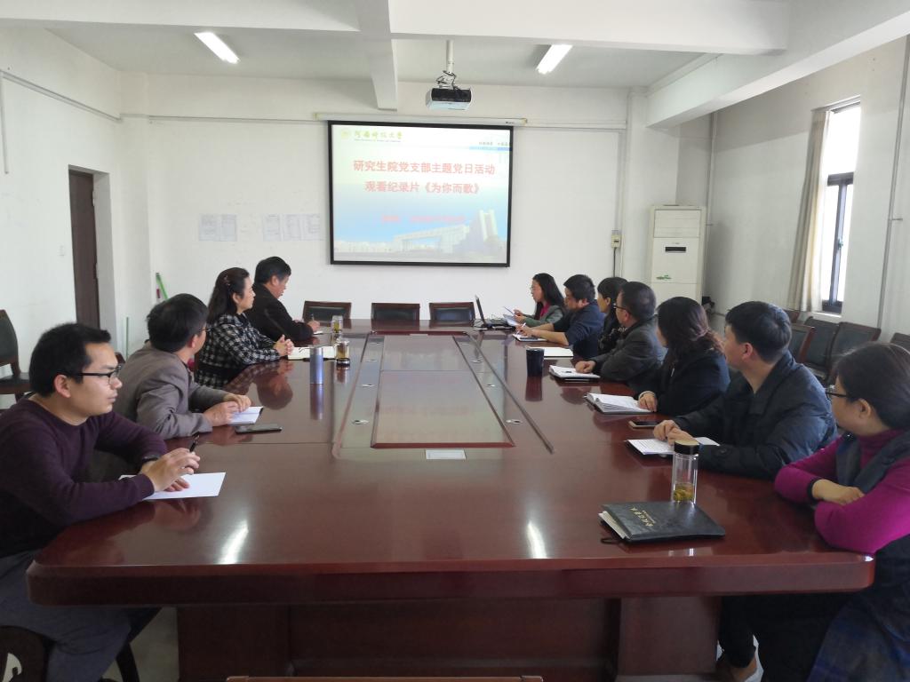 11月22日下午,研究生院党支部“以优秀党员为榜样,立足岗位做贡献”主题党日活动在致远楼207会议室举行。会议由党支部书记张静主持,全体党员观看了展示基层普通共产党员思想和风采的视频《为你而歌》中第十四部之知心辅导员、科研路上的西瓜大王和第十六部之雪域天使、一针一线总关情。