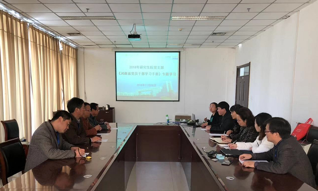 为了牢固增强“四个意识”、做实“两个坚决维护”,加强党员的党性教育、理想信念宗旨教育、遵守党的政治纪律和政治规矩教育,提高党员干部的政治理论水平,做好以案促改的整改提高工作,11月8日下午,研工部/研究生院在图书馆111会议室召开了《河南省党员干部学习手册》学习会。
