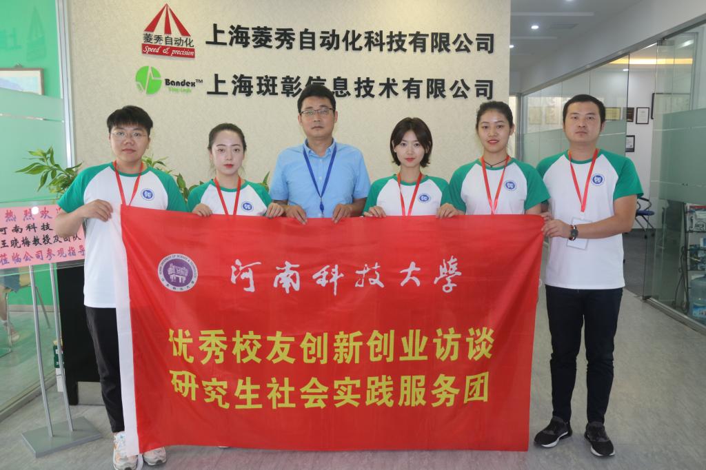 8月19日,河南科技大学研究生社会实践团赴上海社会实践队按计划赴上海菱秀自动化科技有限公司、上海乔治白实业有限公司对我校优秀创业校友进行访谈学习。