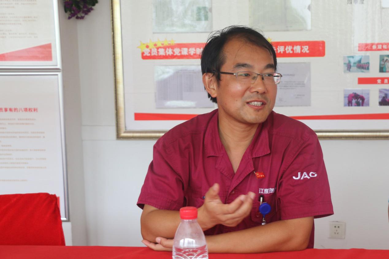 上午9点,实践队在安徽校友会副秘书长王德才校友的陪同下来到江淮汽车集团股份有限公司乘用车制造公司,对冲焊厂厂长、我校1999级热能与动力工程专业彭英文校友进行访谈学习。