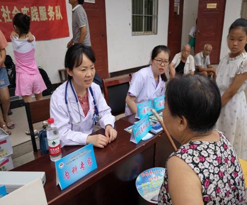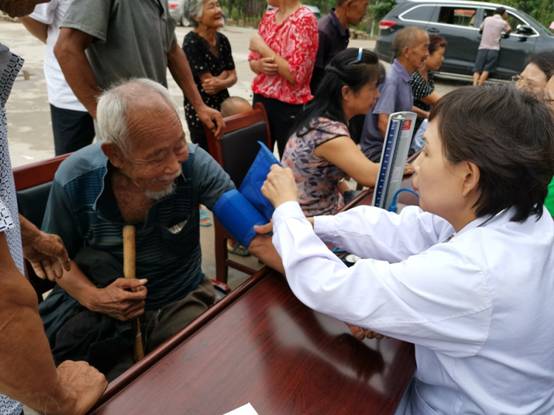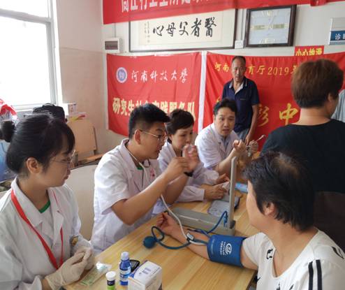 7月26日,服务团与一附院肿瘤科王新帅主任前往汝阳县高庄村为村民义诊,同时免费提供测量血压、空腹血糖等服务。服务员成员们发现,当地高血压、糖尿病患者居多,严重者基本丧失劳动能力。而大部分患病村民没有认识到疾病的严重性,未能遵医嘱服药。团队成员们认真向村民普及高血压、糖尿病等防治知识,讲明并发症的危险性,叮嘱村民要健康合理饮食,遵照医嘱按时服药。