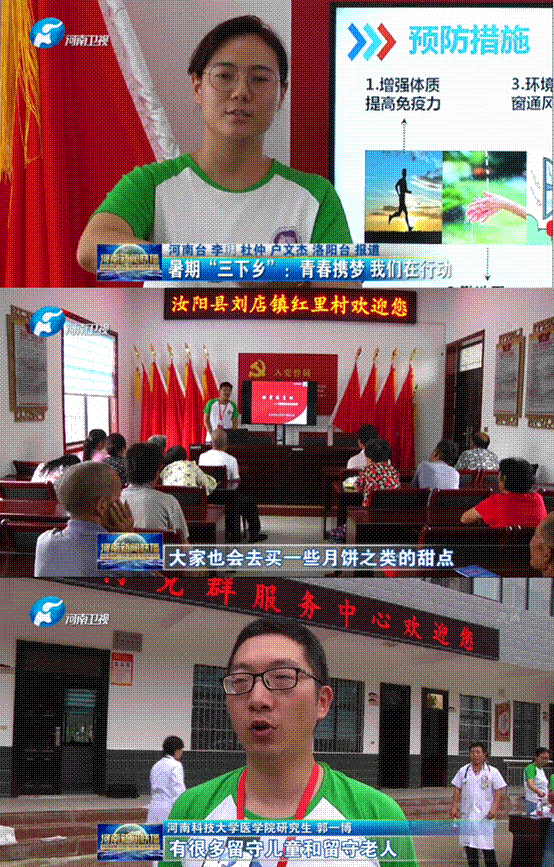 8月2日,服务团与一附院神经内科闫俊强主任一同来到汝阳县刘店镇为村民提供义诊服务,并通过PPT宣讲的形式为村民普及脑卒中的低盐饮食、糖尿病饮食、宫颈癌及流感相关知识,并接受了河南电视台采访,把医疗保健知识宣传给更多的人。