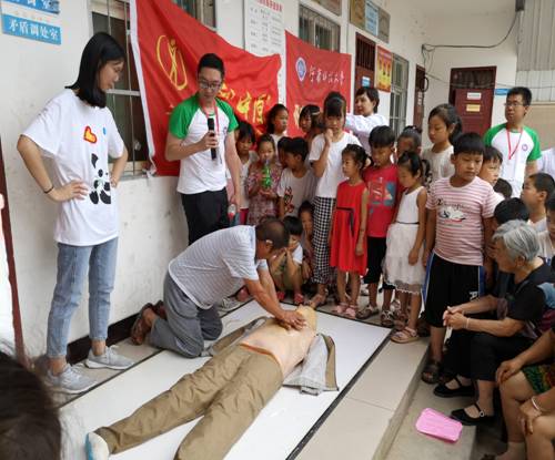 7月24日,博士生服务团成员与河南科技大学第一附属医院血液科秦玲主任一同来到汝阳县红里村,为村民提供义诊服务。团队成员们向村民普及急救相关知识,指导村民进行心肺复苏,使当地村民能在电击、溺水等意外发生的时候,具备初步自救的能力。在义诊过程中,村民纷纷向医生咨询防病治病知识,医生和队员们耐心细致地进行讲解,仔细叮嘱村民在日常生活与饮食中的注意事项。