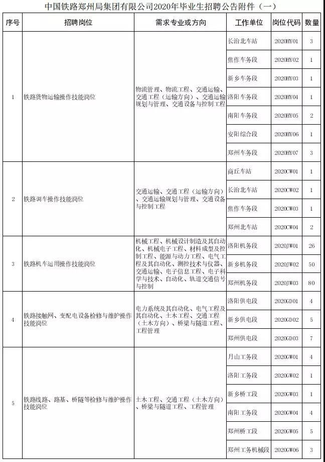 根据企业发展对人才的实际需求,中国铁路郑州局集团有限公司拟招聘2020年全日制普通高等院校本科及以上学历毕业生,具体事宜公告如下: