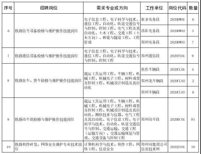 4.专业对口,成绩优良,符合招聘岗位要求的学历、专业等条件;除计算机类岗位(岗位代码2020JS01)外,其他岗位需求专业所学课程中须包含铁路专业课程。