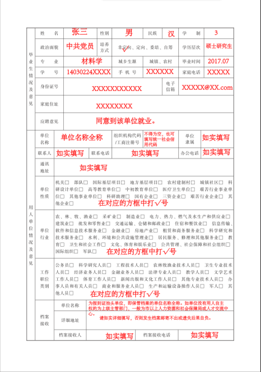各学院在参加就业培训会后,以学院为单位从研工部领取就业协议书(需在最后一页的左下栏加盖学院公章)。培训会前一周内,把打印的成绩单(一份)与学生自行填好的就业推荐表(一份)以学院为单位到研工部、研究生院盖章,然后与领取的就业协议书(一式三份)一起发放至学生本人。毕业生本人必须取得毕业资格,如实向用人单位介绍本人在研究生学习期间的表现,只能与一个用人单位签订就业协议书。另外协议书需填满,如果有空白,尽量用“/”标记。