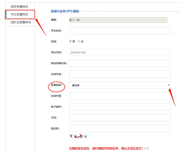 5.参赛研究生务必选择参赛组别为研究生组,否则视为无效信息。