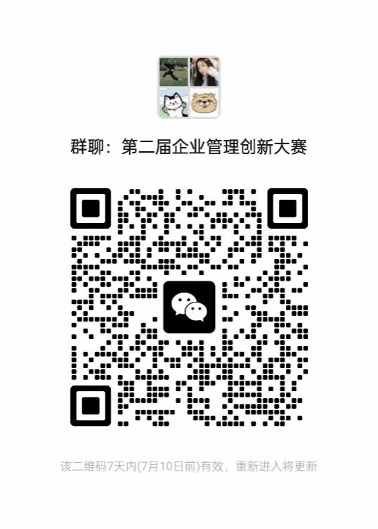 请各参赛团队填写《河南科技大学研究生企业管理创新大赛报名表》(附件3),于7月20日前将报名表发送至邮箱1090299419@qq.com(邮件命名格式:“企业管理创新大赛报名表-院系-参赛队”),并请各参赛团队成员加入企业管理创新大赛校赛微信通知群,后续相关活动通知将在微信群进行(二维码如下,若二维码过期请联系下方的联系人入群)。