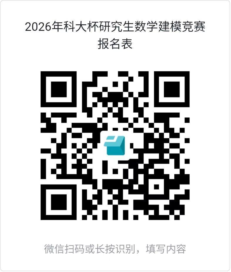 1. 电子报名时间:2026年4月28日~5月12日(周二)12点,报名请通过如下微信二维码扫码填写报名信息,建议在5月12日队伍成型并提交论文后再填写报名信息,以免中途需要修改。