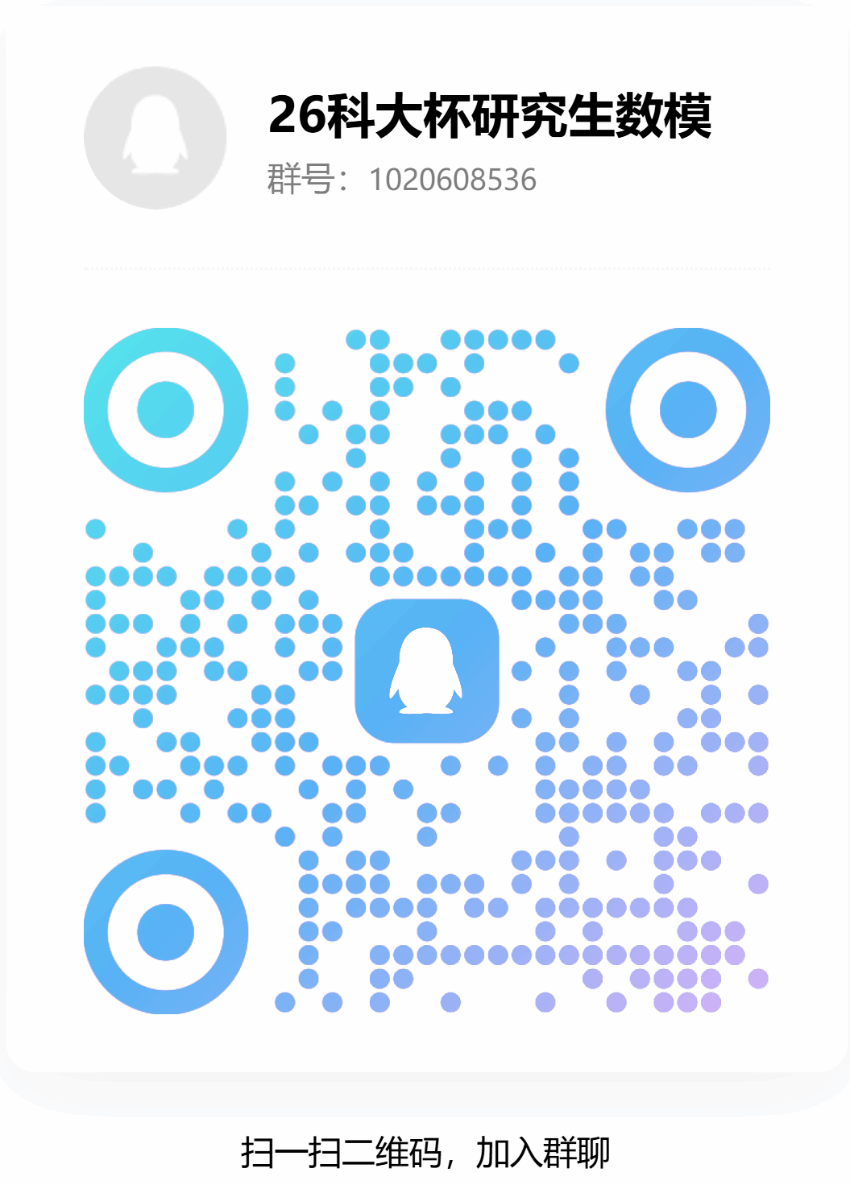 2. 竞赛QQ群加入方式:为提高竞赛报名、考题答疑、自由组队效率,请参赛队员加入2026年研究生数学建模校赛QQ群。