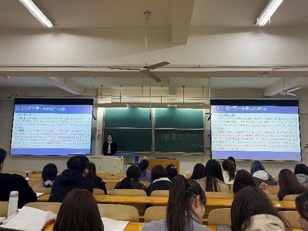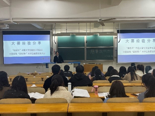 分享会上,曹君娴同学结合自己参赛的经验以及感悟,从团队建设、赛前准备、参赛意义等几个方面进行了经验分享,她通过展示自己的参赛作品,让大家对如何准备项目策划书、项目视频、PPT以及项目路演等方面有了充分的认知。她以自身经历告诉同学们,坚定的理想信念、优良的素质作风、良好的行为习惯、高效的工作方法、强大的团队凝集力是一支优秀队伍的核心竞争力。曹君娴同学的真诚分享,让现场的同学们受益匪浅。