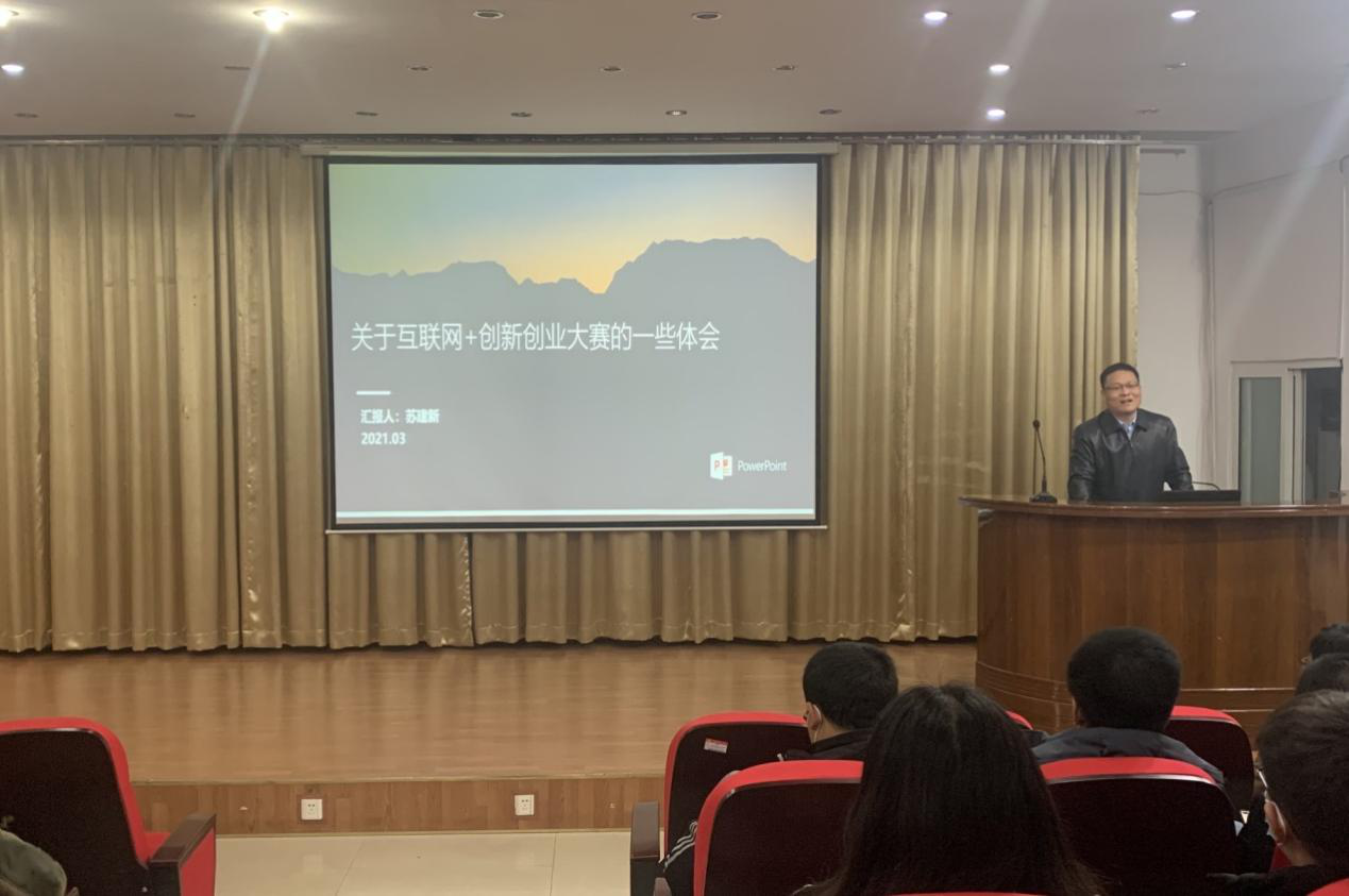 苏老师向同学们分享了自己对于创新创业大赛的心得体会,建议同学们从有特色、有前沿性、技术难度高和社会意义大这四个方面入手进行选题,结合学校特色专业和优势学科,在讨论中碰撞出思想火花,在比赛中取得佳绩。