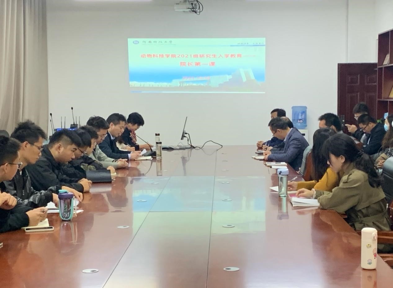 10月14日上午,动物科技学院在河南科技大学开元校区农科2号楼336会议室开展2021级研究生入学教育之“书记第一讲”、“院长第一课”,活动由动物科技学院党委书记李莲、院长丁轲主讲,副院长刘玉梅主持本次活动,2021级全体新生参加。