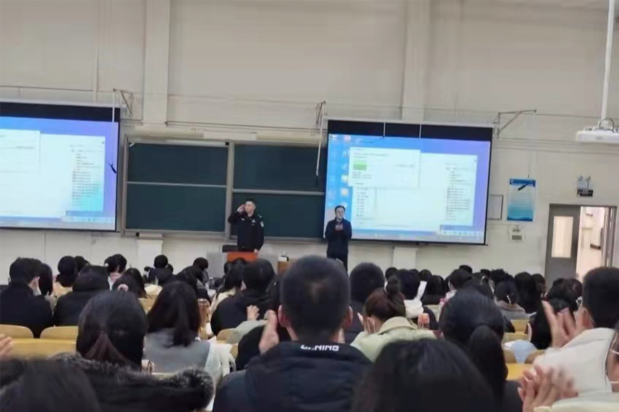 首先,刘警官介绍了什么是电信诈骗及易遭电信诈骗群体,结合现实生活中发生的真实案例让同学们了解其基本特征,掌握相关知识。随后,刘警官向同学们普及了常见的诈骗方式,如刷单、投资理财、冒充客服、冒充熟人、冒充亲友等,加深了同学们对电信诈骗的进一步了解。最后,刘警官向同学们讲解了上当后的补救措施,发现受骗后应及时报警,尽量挽回损失。