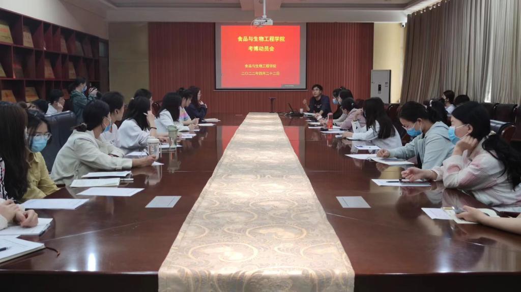 为增进食品与生物工程学院硕士研究生对考博的认识,帮助硕士研究生在读研期间做好考博的规划和安排,营造浓厚的考博氛围。4月22日下午,食品与生物工程学院在工科四号楼239会议室举办了考博动员大会,会议由线上线下同时进行。食品与生物工程学院研究生辅导员王立博老师主持会议,全体研究生参会。