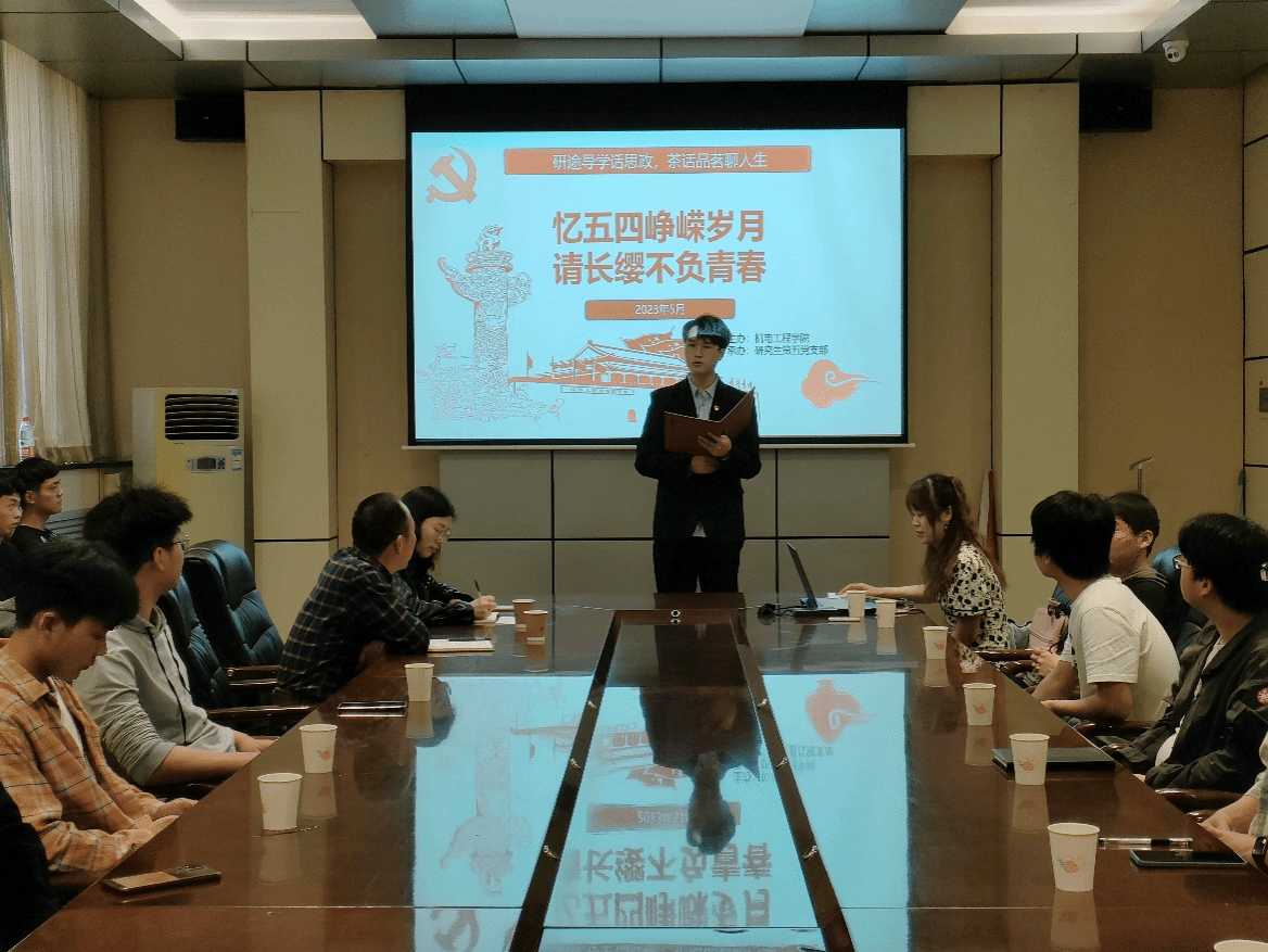 以梦为马,不负韶华,青春相伴,未来可期。5月12日下午,由机电工程学院主办,研究生第五党支部承办的“导学思政”活动在西苑校区3号楼105会议室举行。活动邀请机电工程学院思政导师刘红彬、研究生辅导员杨丽秀及其他30余名党员参加,大家以“忆五四峥嵘岁月,请长缨不负青春”为主题进行了深入探讨和交流,活动由研究生党员代表王化北主持。