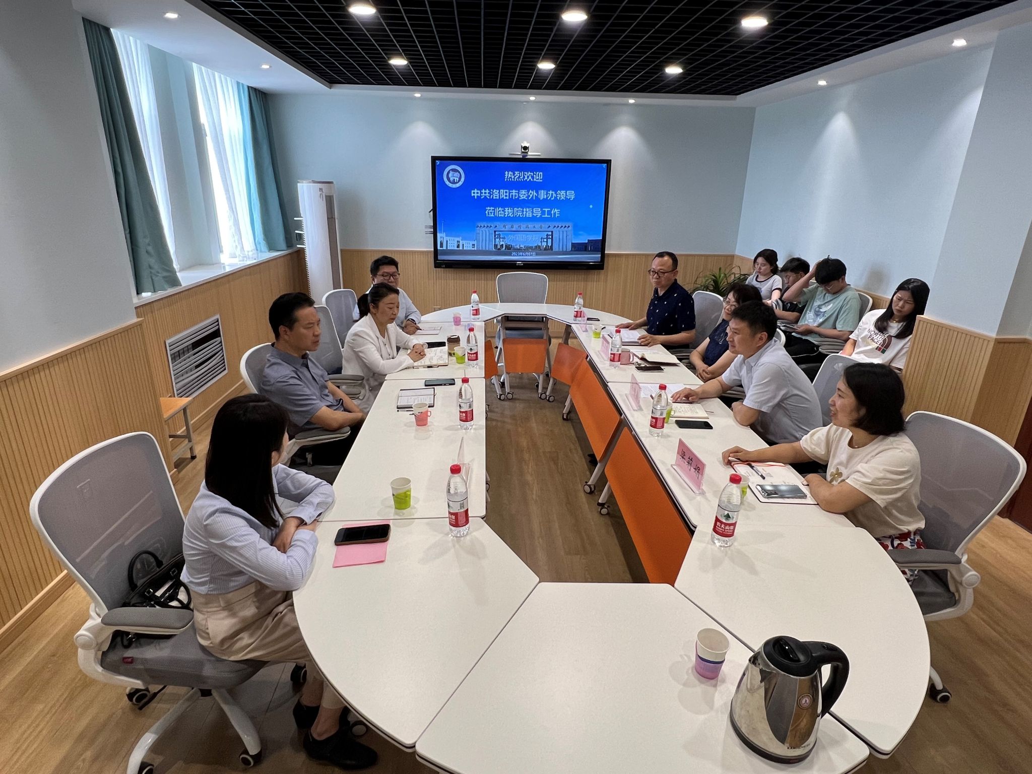 2023年6月7日上午,洛阳市委外事办主任张红伟、副主任李莹、机关党支部专职副书记邱鸣等一行四人莅临外国语学院调研国际青年志愿者、翻译人才建设及国际交流等事宜。学院党委书记孙培鑫、党委副书记梁莉娟、副院长张卫娣、研究生秘书高华伟以及学生代表参加本次座谈会。