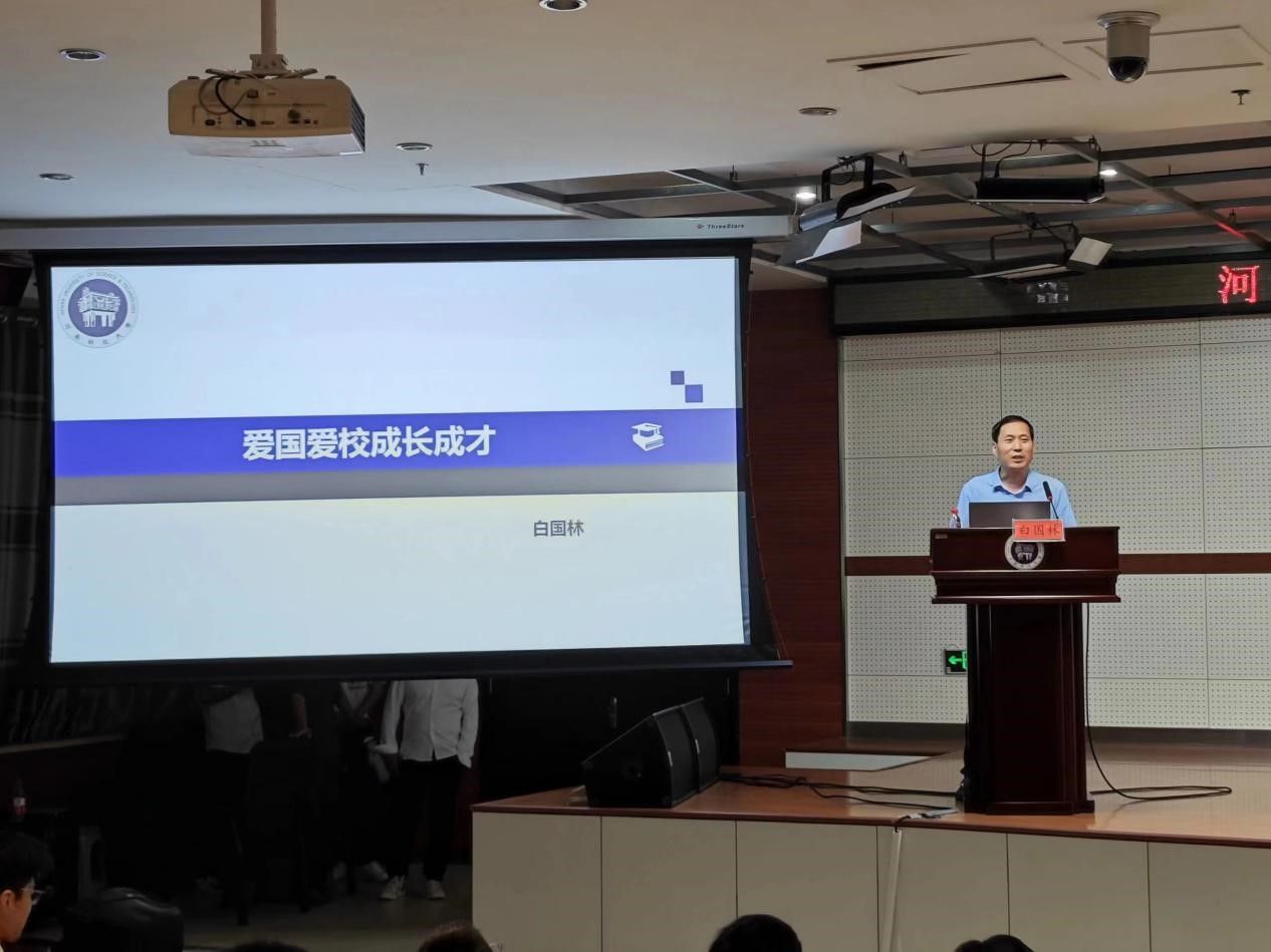会议伊始,白国林围绕人际交往和思想品德两方面,深入浅出,指出大学教育的根本任务是立德树人,教育同学们要爱党、爱国、爱校,坚定理想信念,坚定拥护“两个确立”,始终做到“两个维护”。随后,他以同学们校园生活为例,强调了文明上网、宗教、防范电信诈骗、宿舍及实验室安全、心理健康等问题,教育同学们要遵纪守法。最后,他祝愿各位同学在未来的学习生涯中健康成长,并成才。