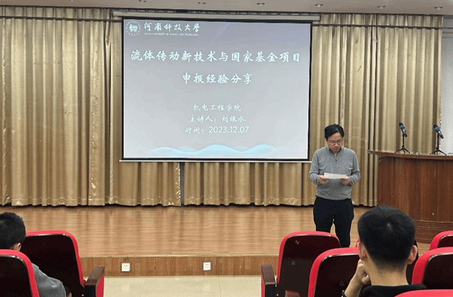 12月7日下午,华中科技大学刘银水教授应邀前来我校讲学,于西苑校区南九学术报告厅以“流体传动新技术与国家基金项目申报经验分享” 为题作学术报告。报告会由机电工程学院副院长仲志丹教授主持。