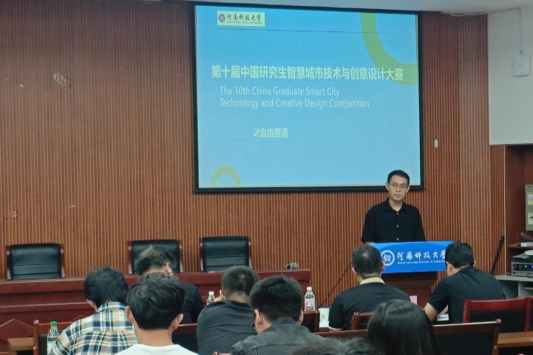 9月26日下午,由党委研究生工作部/研究生院主办、车辆与交通工程学院承办的第十届中国研究生智慧城市技术与创意设计大赛-校内选拔赛在西苑校区六号楼101会议室举行。校赛组委会特邀机电工程学院贾新杰老师、车辆与交通工程学院董彬老师、艺术与设计学院王伟老师担任评审专家,选拔赛由车辆学院研究生辅导员袁国强主持。