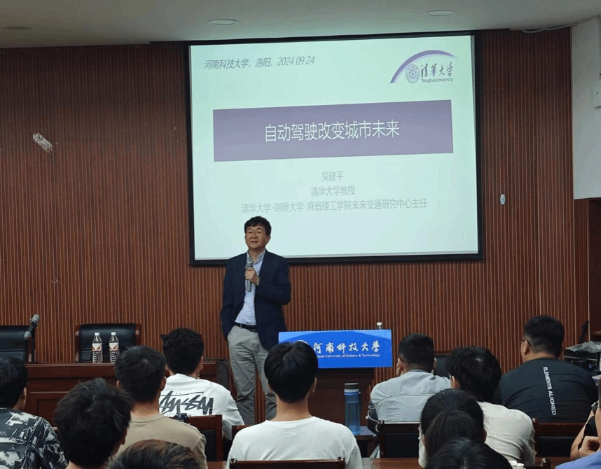 近日,清华大学吴建平教授应邀在西苑校区6-101报告厅为我校师生做题为《自动驾驶改变城市未来》的学术演讲。演讲由车辆与交通工程学院院长徐立友教授主持。