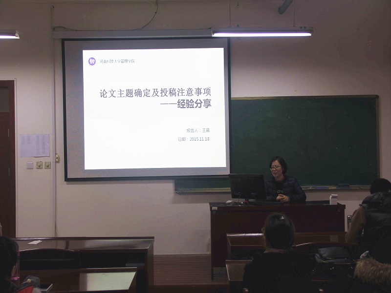 12月28日下午三点,管理学院在文科1号楼S305教室举行了以“科研,从了解开始”为主题的学术沙龙活动,管理学院学工办主任、研究生辅导员徐家宁老师、管理学院研究生秘书赵丹老师、MPACC办公室主任李宝峰老师、韩德超老师及管理学院2015级、2016级的全体研究生参加了此次学术沙龙活动。此次活动由管理学院研究生秘书赵丹老师主持。