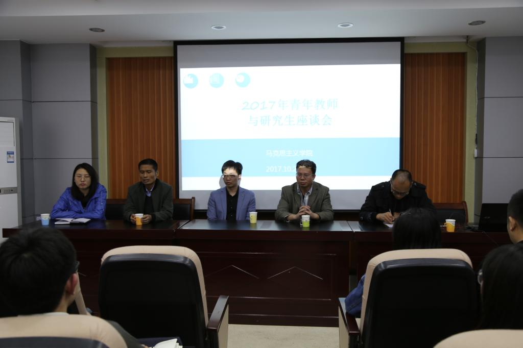 为贯彻落实全国高校思想政治工作会议精神,进一步加强我院研究生与青年教师的交流,提高研究生培养质量,2017年10月23日晚,学院在文科一号楼802室召开了青年教师与研究生座谈会。会议邀请了具有博士学位的青年教师路振召、闫利春、陈培荣三位老师,自全院各个年级的45名研究生进行座谈,研究生秘书蔡中华老师、研究生日常管理老师徐晨晨参加活动,活动由蔡中华老师主持。