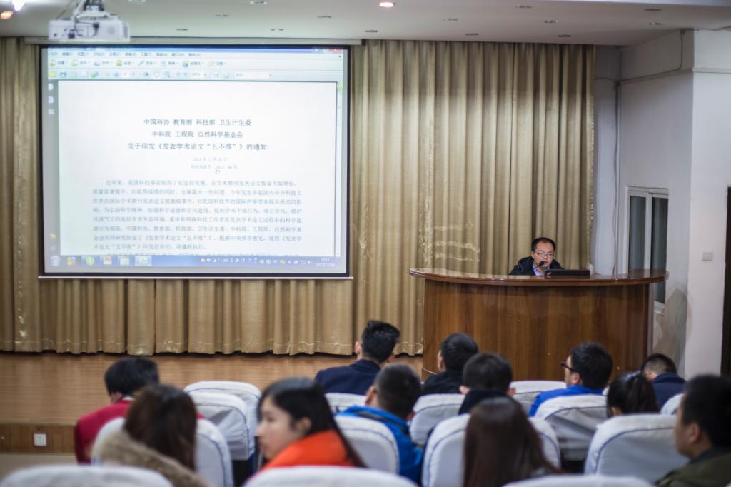 参会研究生首先学习了《发表学术论文“五不准”》。希望各位同学严格要求自己遵守“五不准”,有则改之,无则加勉,增强自律意识,共同营造我校良好的学术环境。同学听完后对这五不准很认同,只有大家都这样遵守,我们学校的学术作风才会很好,所有的科技工作者都遵守的话,我们国家的学术氛围才会更好。