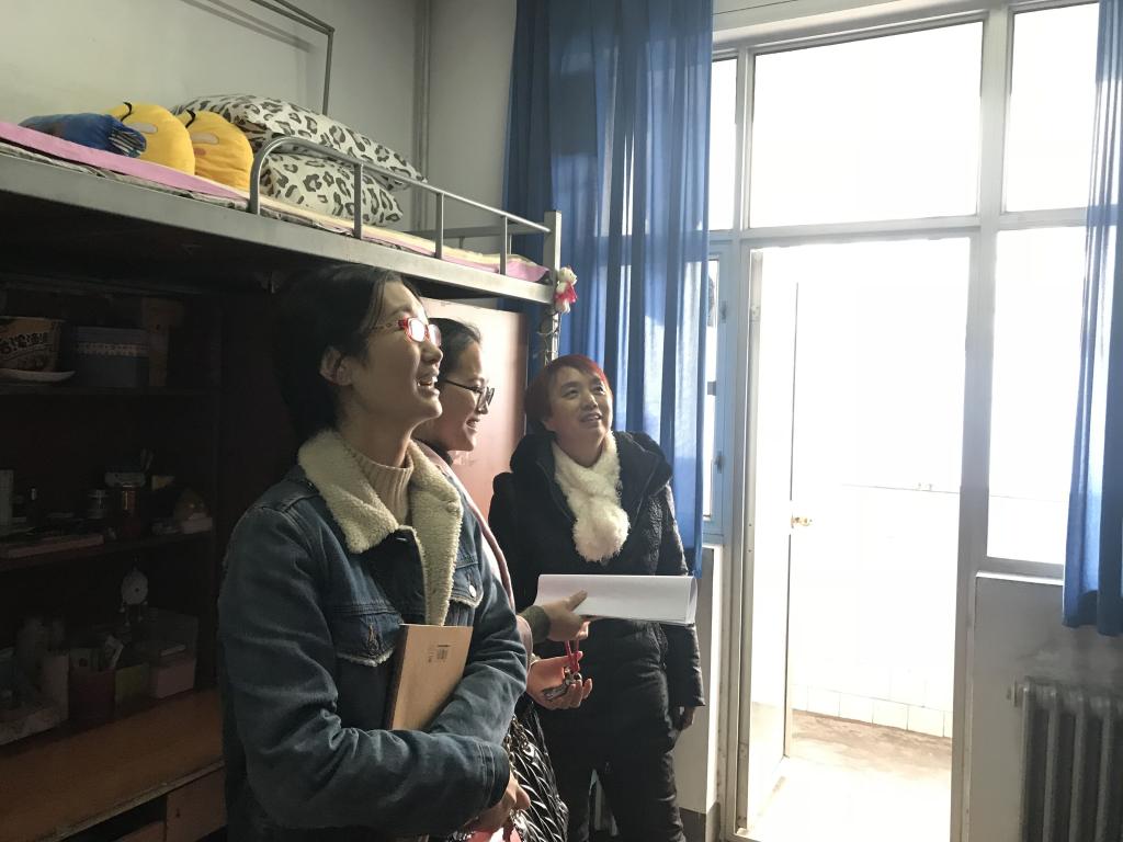 此次检查评比的重点是:宿舍地面是否清洁、物品摆放是否整齐、文化氛围是否好、用电情况是否安全等方面。检查过程中,汤黎明老师等认真了解了同学们的学习、生活情况,认真检查了各宿舍卫生及暖气供应、安全用电情况,询问了安全常识掌握情况等。汤老师还特别跟同学们强调了一定要严禁使用违章电器,杜绝使用大功率电器、酒精炉等违章物品,消除各种可能的安全隐患,同时还要养成良好的卫生习惯,保持良好的卫生环境。