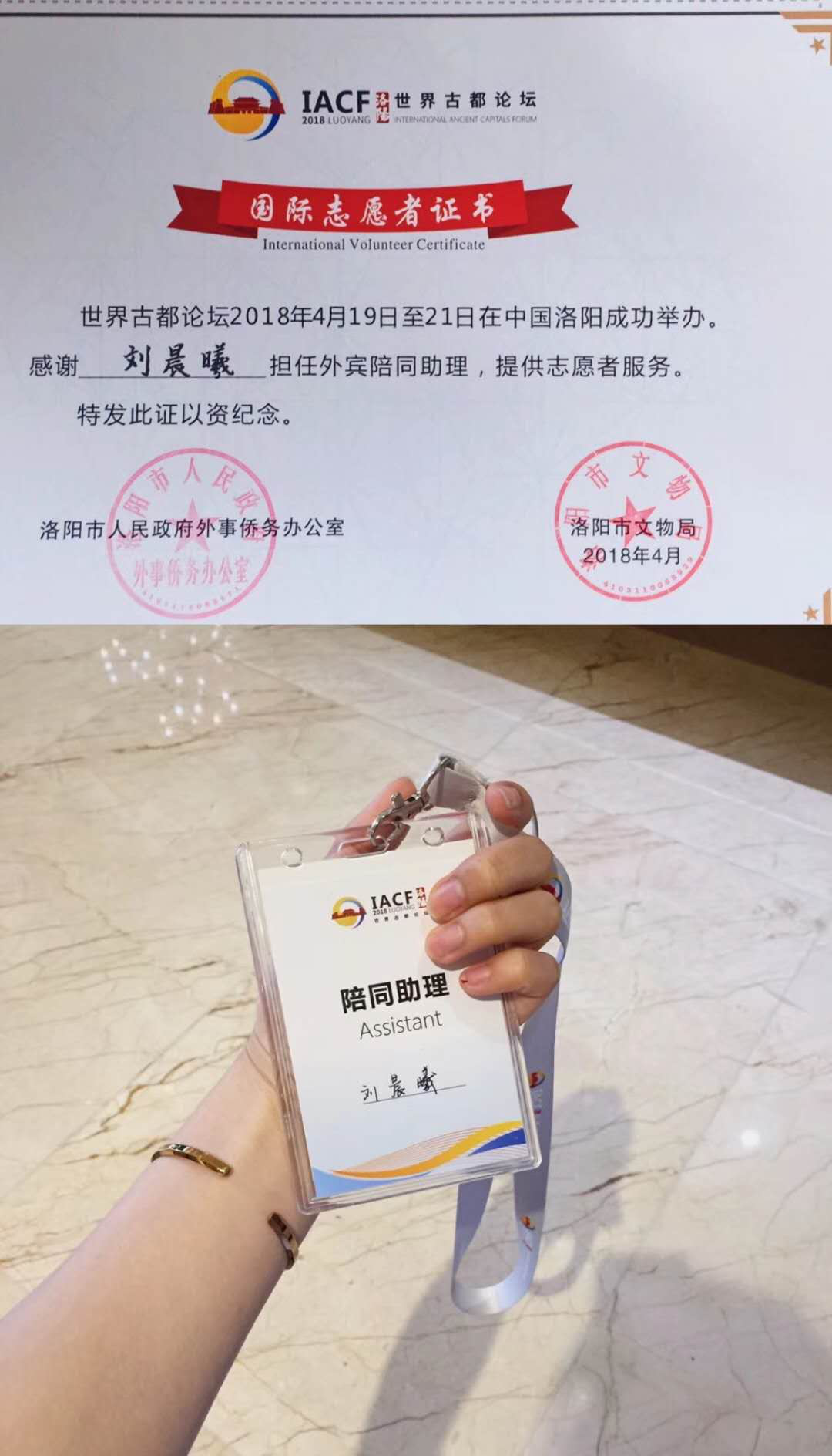 论坛闭幕后,我院全体志愿者受到组委会和洛阳市外办高度评价并被授予国际志愿者荣誉证书,为学校,研究生院和外国语学院争得了荣誉。