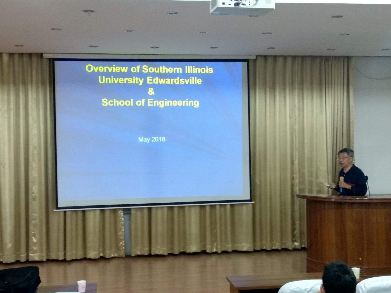 顾克勤教授还详细介绍了南伊利诺伊大学的院系设置,专业情况,交换生情况,合作院校,学生校内课外活动,生活学习以及毕业生的学习和就业等情况,热情欢迎我院研究生报考交流。随后顾教授集中回答了同学们的问题,并在两校的学术交流,人才培养,以及毕业生就业等方面做了详细报告,对于留学生在研究经验,注重交流,以及英语的表达能力方面的要求作了介绍。