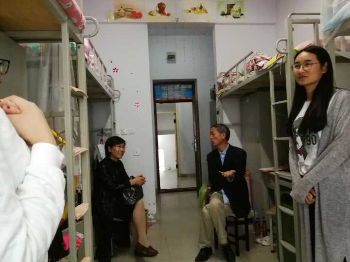 在研三毕业生宿舍,刘书记坐下来和学生亲切交谈,仔细了解了学生的升学和就业情况、日常生活开销情况等。让学生谈谈对三年研究生学习生活的体会,并希望他们给学院的发展多提好的建议,刘书记认真听取了学生提出的学院在研究生工作中的一些不足。在研二学生宿舍,刘书记询问了学生的课外生活情况,鼓励学生多听报告,要积极参加人文、法制等方面的活动,提高综合素质,全方面发展自己。刘书记对研一学生宿舍整洁的环境进行了表扬,就学生宿舍没有安装风扇和空调的问题进行了了解,并对防止传销、诈骗、校园贷以及非法宗教宣传活动进校园问题等进行了强调。