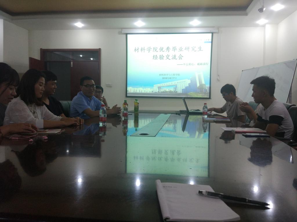 为响应研工部、研究生院 “情系科大,扬帆起航”2018届研究生毕业季系列主题教育活动,材料学院于6月7日晚在工科1号楼261会议室举办了“不忘初心,砥砺前行”优秀毕业研究生经验交流会。材料学院研一、研二学生参与交流会。