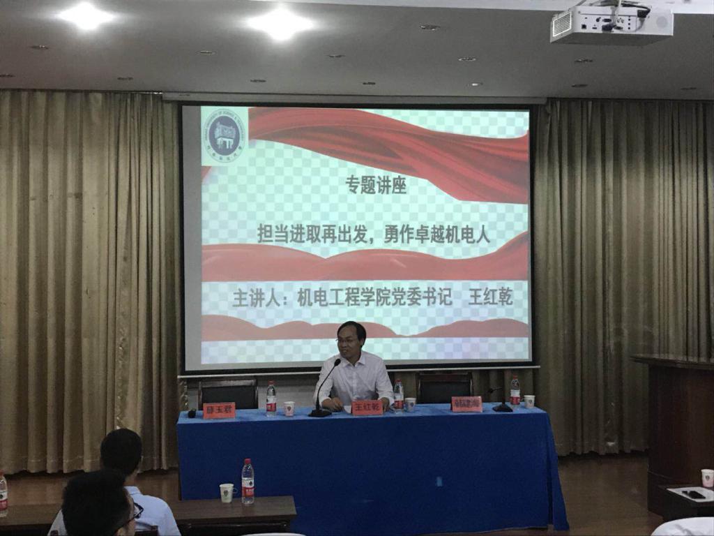 9月10日上午,适逢第34个教师节,机电工程学院党委书记王红乾在西苑校区的南九音乐厅,为学院2018级研究生新生作题为《担当进取再出发,勇作卓越机电人》的专题讲座。讲座由机电工程学院副院长薛玉君主持,全体研究生新生聆听了讲座。