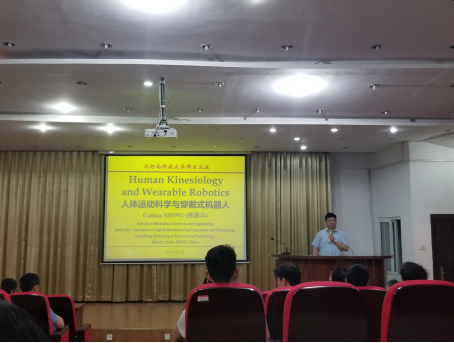 5月24日上午,华中科技大学机器人研究院院长熊蔡华教授应邀在西苑校区南九学术报告厅为我校师生作题为《人体运动科学与穿戴式机器人》的专题讲座,讲座由机电工程学院院长韩建海教授主持。