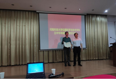 王中宇教授是精密测试技术及仪器领域的行业翘楚,基于学科建设需要,机电工程学院特聘王中宇教授为我校仪器科学与技术学科讲座教授,报告会开始前,机电工程学院院长韩建海为王中宇教授颁发了讲座教授证书。