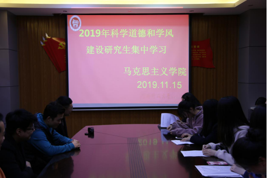 为进一步提升我院研究生科学道德精神,加强我院研究生学风建设工作,马克思主义学院于2019年11月15日,在文科一号楼812会议室进行科学道德和学风建设集中学习活动,马克思主义学院全体研究生积极参加。