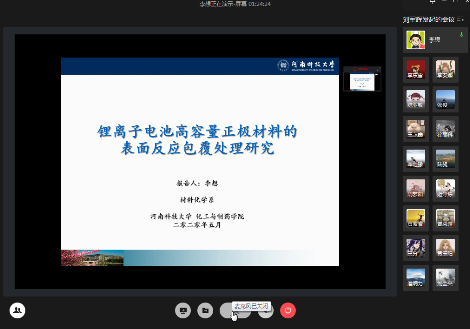 2020年6月9日上午8:30,河南科技大学化工与制药学院在企业微信上在线举办了化工与制药学院研究生分论坛,论坛主题为“不忘初心·共享创新”。化工与制药学院张延萍副院长和研究生辅导员刘军辉老师组织举办了此次论坛,张延萍副院长全程主持了论坛,化工学院研究生和部分本科生参加了论坛,学院的陆昶、李军波、宋文生、彭淑鸽、王辉、高嘉屿和潘炳力老师参与了学生报告的点评。