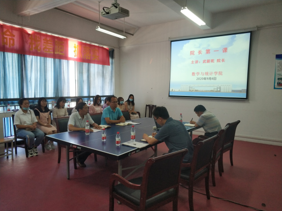 9月4日上午10时,数学与统计学院2020级研究生入学教育“院长第一课”在工科4号楼637会议室举行。院长武新乾教授为2020级全体研究生新生带来了开学第一课,学院党委书记张清波、副院长李培峦教授、研究生秘书张冀老师及我院2020级全体研究生参加了座谈会。座谈会由张冀老师主持。