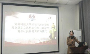 2020年12月6日下午,河南科技大学2020-2021学年马克思主义研究会研究生青年社员讲党课启动仪式在农科3号楼331会议室召开。党委研究生工作部思政教育科科长陈洁老师及2020-2021学年马克思主义研究会全体研究生参加会议。会议由经济学院2019级研究生王茜茹和马克思主义学院2020级研究生耿金涵主持。