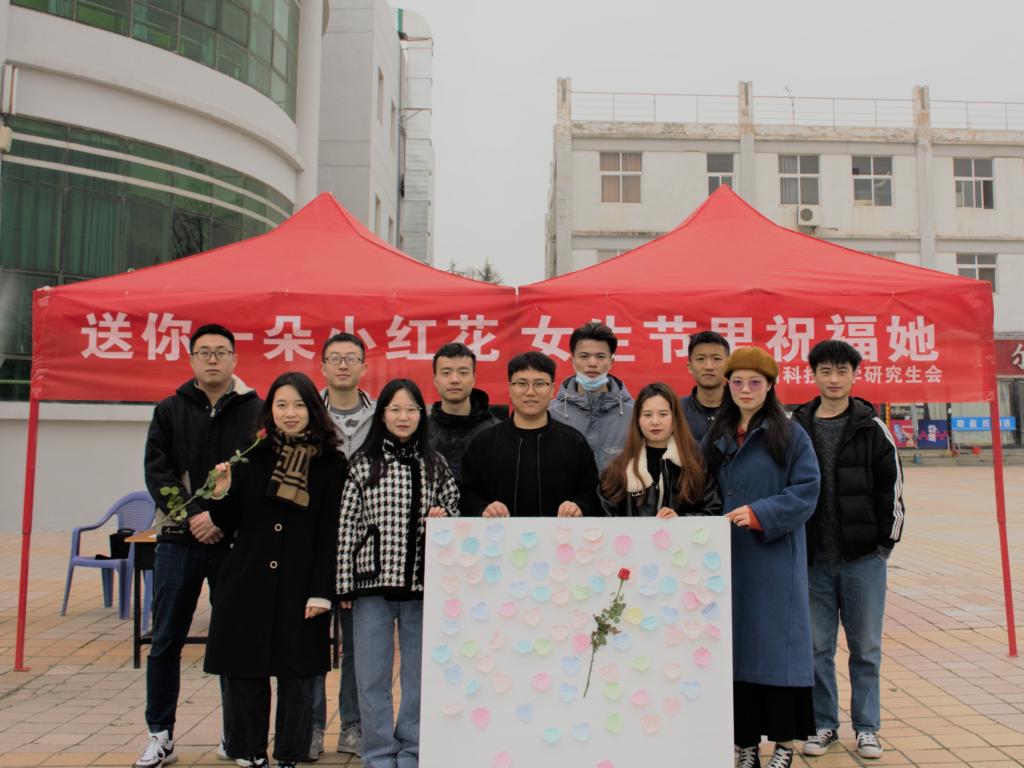 为丰富校园文化生活,展现青春风采,让女生在暖暖春日里绽放出更自信、美丽的笑容。3月7日中午,由党委研究生工作部主办,校研究生会承办的“送你一朵小红花,女生节里祝福她”女生节主题活动在开元校区菁园餐厅门口举办。