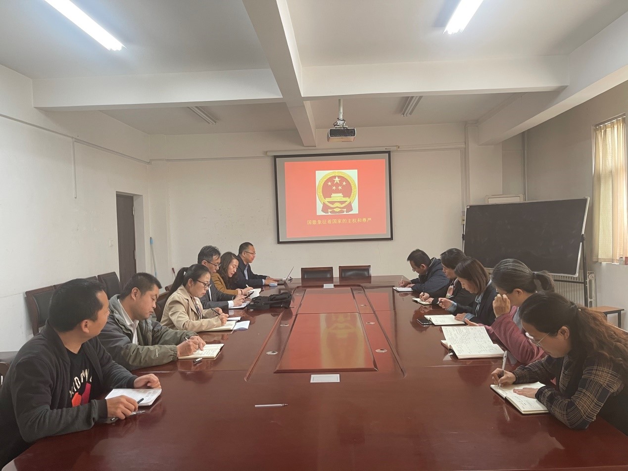 会上伊始,党员张伏介绍了中华人民共和国国徽的构成和含义:国徽中间是五星照耀下的天安门,周围是谷穗和齿轮;国徽象征着国家的主权和尊严,是国家的象征和标志,一切组织和公民都应该尊重和爱护国徽。紧接着,支部全体成员一起观看了《中国共产党百年述职报告》,影片讲述了中国共产党这个青春永驻的百年大党荡气回肠的壮丽历程,推动了党史学习教育往心里走、往深里走。张伏号召大家:守初心,担使命;改方法,创思路;找差距,抓落实,为构建河南科技大学新时代研究生教育体系贡献力量。