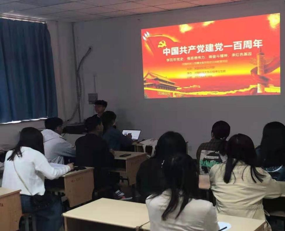 学习百年党史、传承红色基因,4月18日上午,根据党委研究生工作部“研心向党,致敬百年”系列活动通知,博士生在工科2号楼207开展了“学党史、强信念、跟党走”主题班会。活动由农学院20级博士生石欣隆主持,杨皓麟、王航、昝志曼、石欣隆和许泽华五位同学进行宣讲,河南科技大学20级博士生代表参加活动。