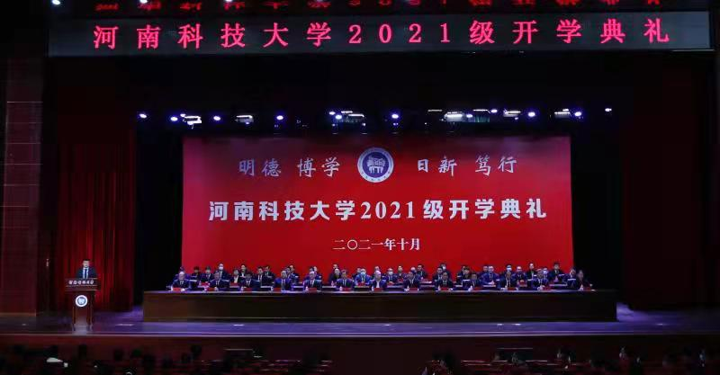 10月10日上午,河南科技大学举行2021级研究生、本科生新生开学典礼。本次开学典礼采用线上线下相结合的方式进行,线下主会场设在开元会议中心。中国工程院院士、中国机械工程学会理事长李培根,校领导王洪彬、孔留安、李漪、李友军、李全安、朱春阳、孟伟、魏世忠、宋克兴、李会宗、张小安、杨霞出席典礼。杰出校友代表、相关部门负责人、各学院党委书记、副书记、2021级新生辅导员,以及700余名2021级新生代表参加主会场典礼,11000余名新生通过线上直播观看典礼。